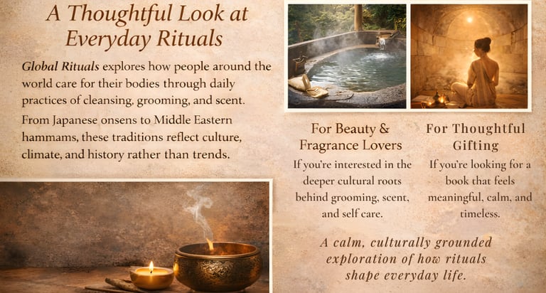 We will travel from the heat of Moroccan hammams and the glow of South Asian oil rituals to East Asian skincare philosophies, African exfoliation practices, and modern perfume layering. Global Rituals is for readers who want self-care to feel intentional, alive, and deeply rooted in tradition.